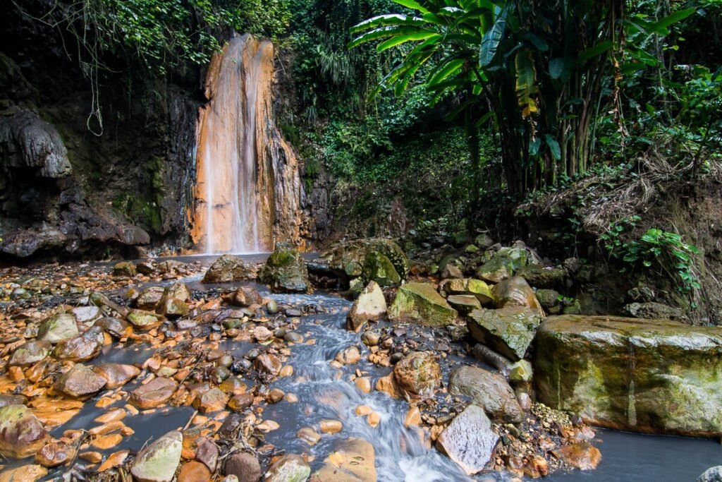Located in the Soufrière region of St. Lucia, the Diamond Falls Botanical Gardens is a must-visit for nature lovers. The gardens are set in a lush, tropical environment, and the main attraction here is the Diamond Falls, which is not only beautiful but has a rich history and interesting geothermal features.